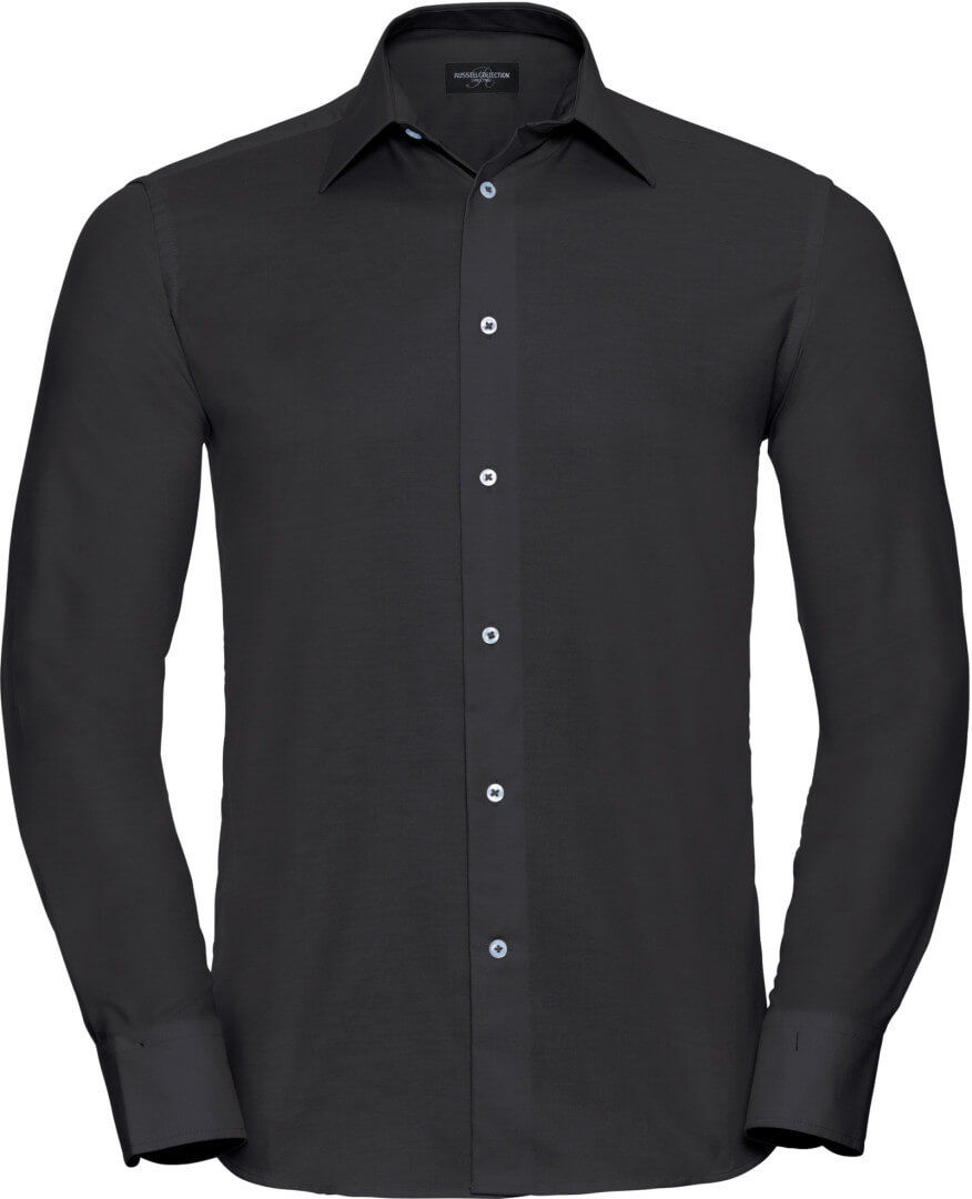 Pánska štýlová košeľa s dlhým rukávom, zaoblený lem, klasický golier a náhradné gombíky, na rukávoch manžety na ktoré sa dá prišiť gombík.