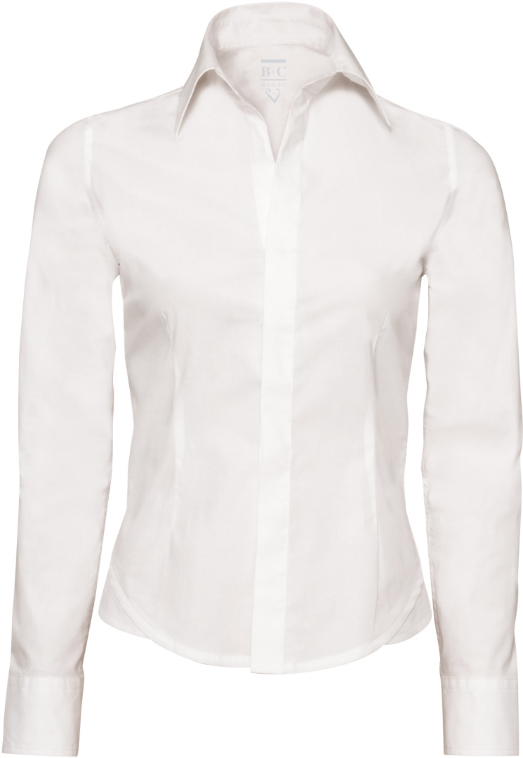 135g/m², 97% česaná bavlna, 3% elastan, strih veľmi zdvôrazňujúci postavu, módne detaily, zaguľatený lem, s trendy vsadkou, skrytá gombíková rada