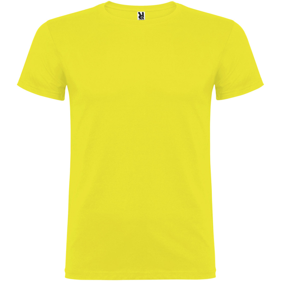 Tričko s krátkym rukávom a s dvojvrstvovým výstrihom z elastanu, vyrobené z trubicovej tkaniny, pre dospelých. Zosilnené kryté švy v golieri. Odnímateľný štítok. Model meria 190 cm a má na sebe veľkosť L. Jednolícny džersej 100% Bavlna, 155 g/m2.