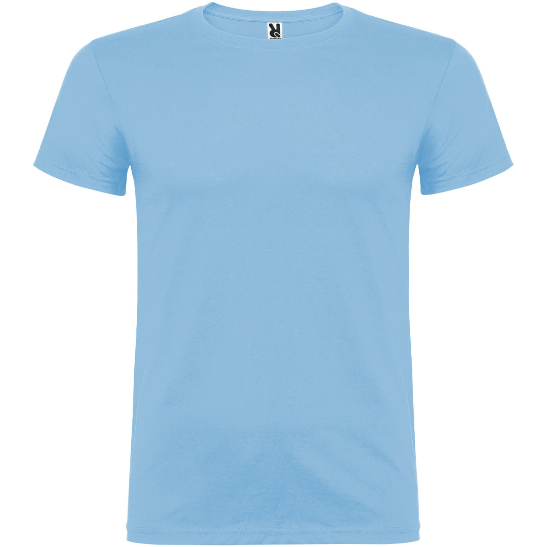 Tričko s krátkym rukávom a s dvojvrstvovým výstrihom z elastanu, vyrobené z trubicovej tkaniny, pre dospelých. Zosilnené kryté švy v golieri. Odnímateľný štítok. Model meria 190 cm a má na sebe veľkosť L. Jednolícny džersej 100% Bavlna, 155 g/m2.