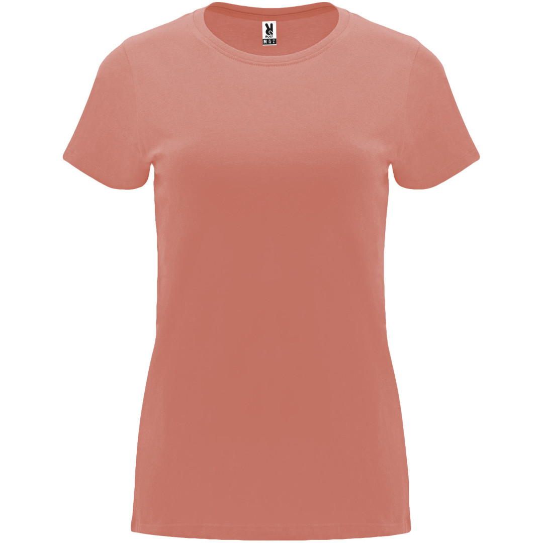 Dámske tričko s krátkym rukávom a priliehavým strihom. Rebrovaný výstrih. Zosilnené skryté švy vo výstrihu. Odnímateľná etiketa.