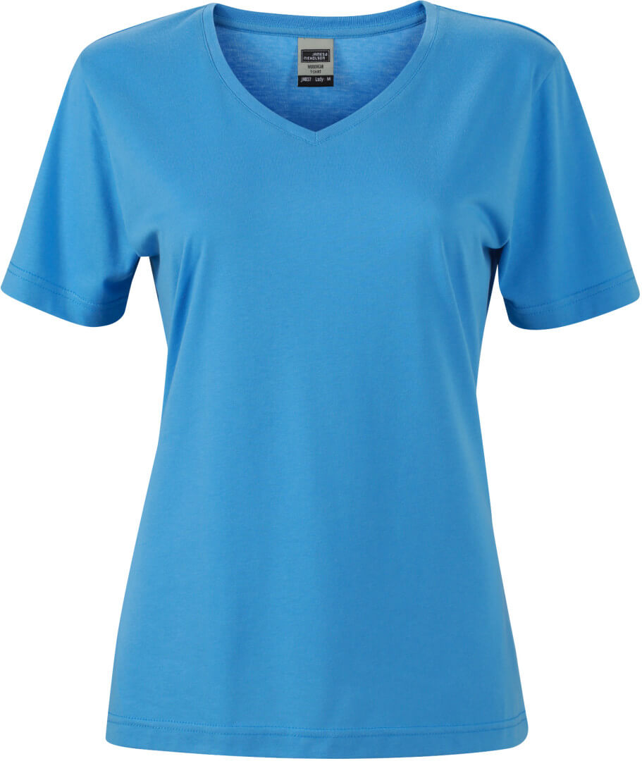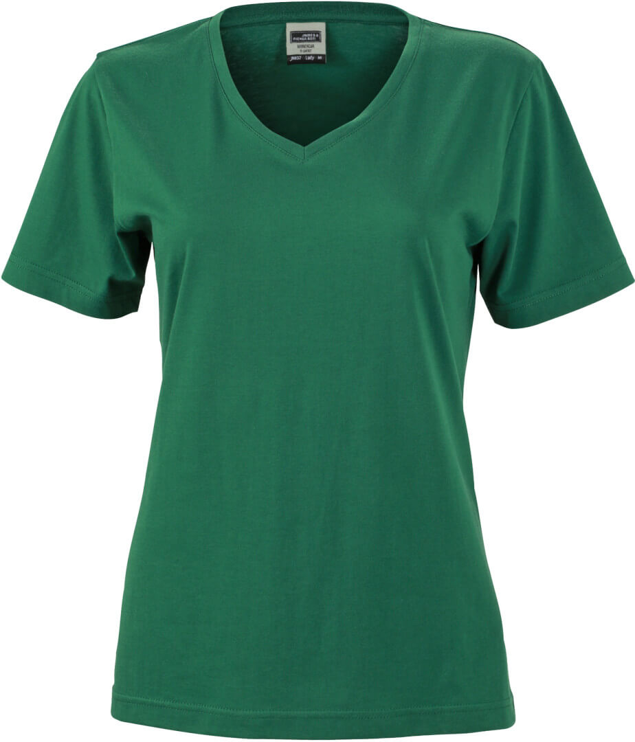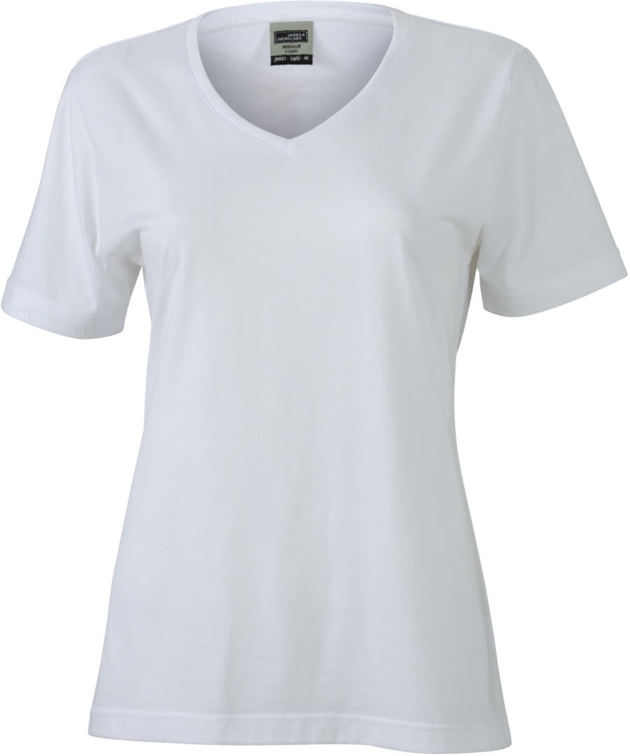 160g / , 50% bavlna, 50% polyester dámske mierne vypasované pracovné tričko, tričko má úzky elastický lem okolo krku a výstrih do véčka, z odolného materiálu, možno prať na 60 °, vhodné pre sušenie v sušičke