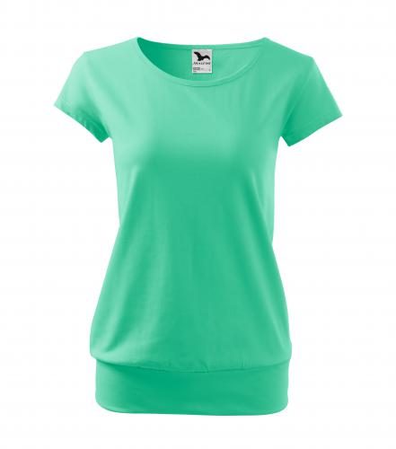150 g/m2, 100 % bavlna, finálna silikónová úprava, Single Jersey – Trendové dámske tričko s veľmi krátkym rukávom, voľnejšieho strihu, široký spodný lem. Okrúhlý priekrčník s úzkym lemom zo zhodného materiálu. Ramená spevnené všitým prúžkom. Tričko má dĺžku do hĺbky bokov. Silikónové zmäkčovadlo zaisťuje splývavosť a mäkkosť na dotyk.