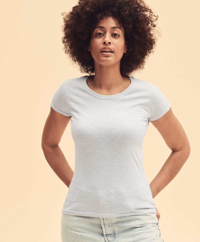 195g / , 100% česaná bavlna, sivý melír: 97% česaná bavlna, 3% polyester dámske pohodlnosť s bočnými švami, okrúhly výstrih s rebrovým elastickým lemom (bavlna / Lycra®) a dvojitými švami, spevňovacie páska od ramene k ramena, možno prať na 60 ° a sušiť v sušičke