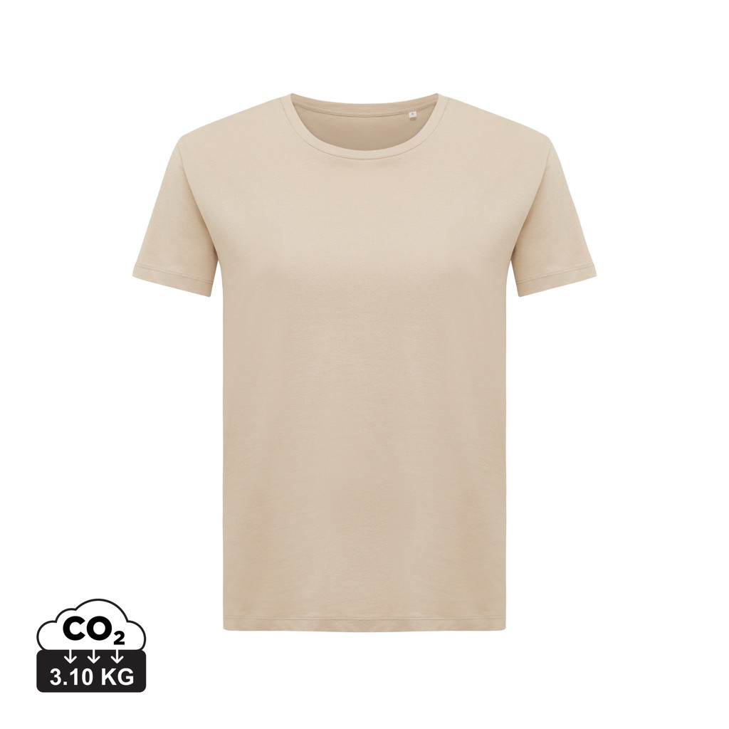 Dámske tričko stredného strihu vyrobené zo 100 % bavlny (30 % recyklovanej, 70 % organickej) s gramážou 160 g/m². Okrúhly výstrih s rebrovaným lemom 1×1. Recyklovaný a organický obsah je zaručený vďaka použitiu technológie AWARE™, ktorá kombinuje možnosti skenovania materiálov a technológiu blockchain. Každý výrobok Iqoniq má jedinečnú etiketu s QR kódom, ktorý odkazuje na príslušný digitálny pas výrobku. 2 % z výnosu z každého predaného kusu sú venované organizácii Water.org. Certifikát OEKO-TEX® STANDARD 100 2303045 od spoločnosti Centexbel. Charakter recyklovaného materiálu môže ovplyvniť farbu alebo vzhľad nečistôt v textile.