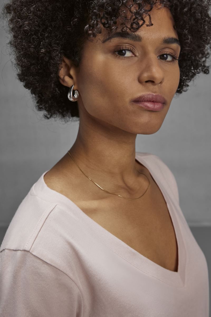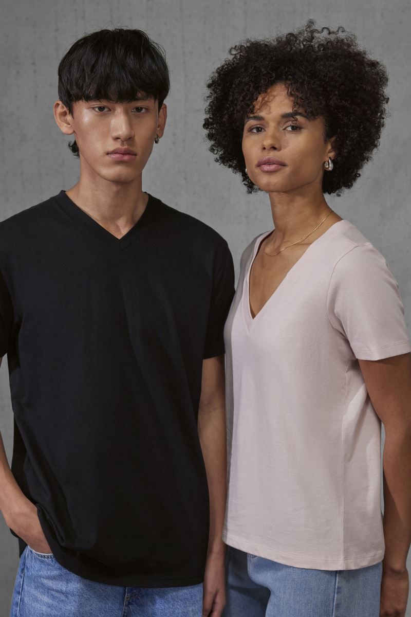 Klasický strih, hlboký výstrih do V, krčná lemovka, neutrálny veľkostný štítok, prateľné na 40 °, možno sušiť v sušičke pri nízkej teplote.