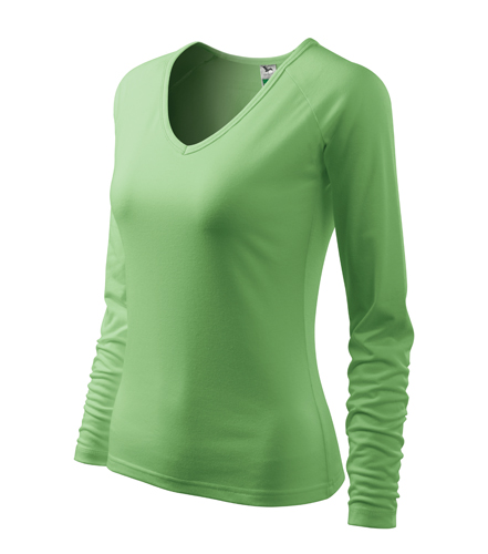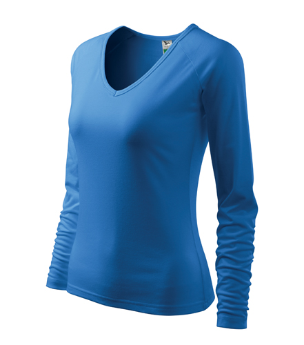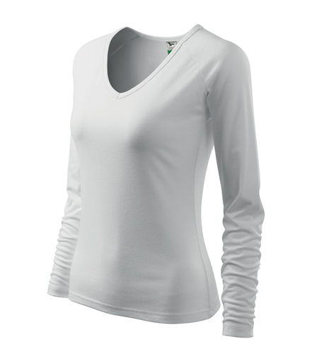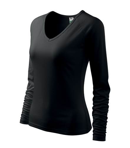 Kvalitné dámske tričko vysokej gramáže. Priekrčník v tvare V. Dlhý raglánový rukáv. Zúžený strih zvýrazňujúci dámsku siluetu. Vďaka prídavku elastanu drží tvar. Vhodné na potlač a výšivku.