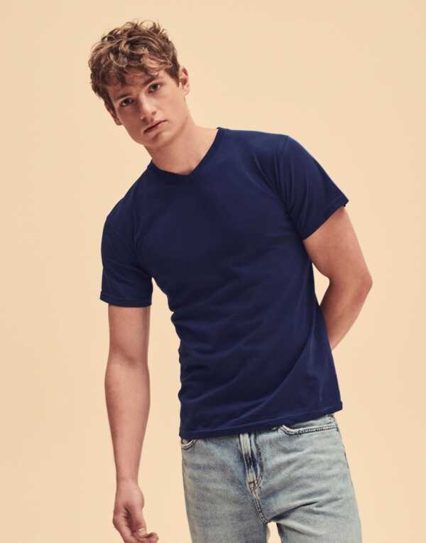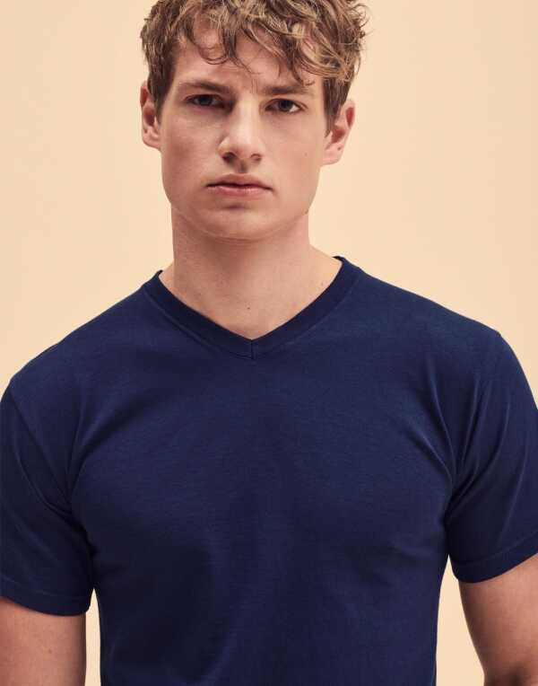 ·165 g/m2 (Biele: 160 g/m2) ·100% bavlna (Belcoro yarn)(Heather Grey: 97% bavlna, 3% polyester) ·výstrih do V ·dvojité švy pri rukávoch a spodnom okraji ·bez bočných švov.