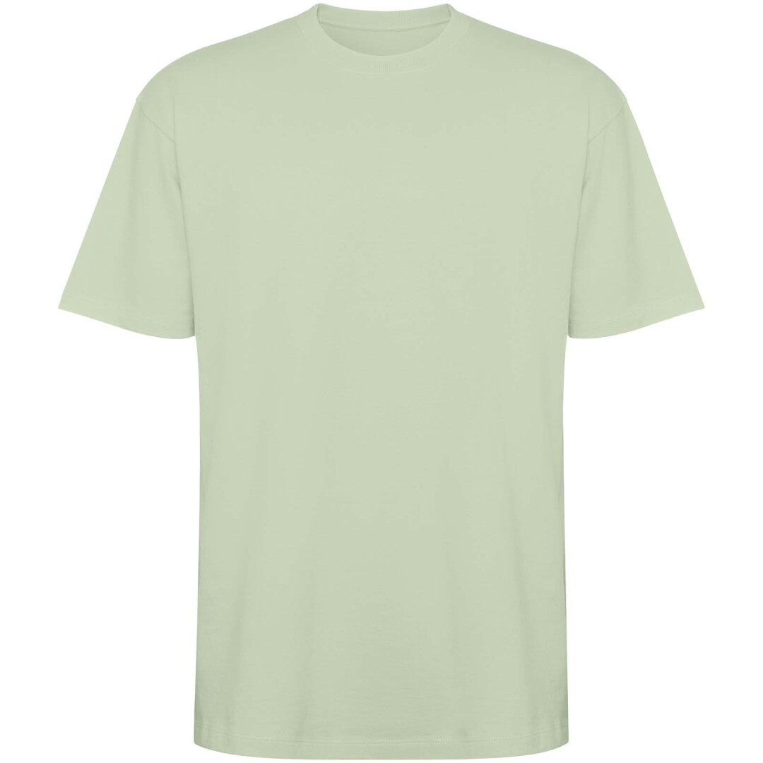 Tričko s krátkym rukávom v nadmernej veľkosti. Okrúhly golier zdobený 2×1 rebrovým úpletom so zladenými krytmi švov. Bočné švy. Široké dvojité prešívanie na rukávoch a leme. Odnímateľný štítok.